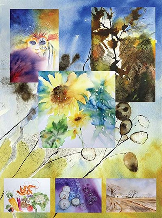 Our challenge for April was Collage and the winner is Barbara Stevens with her painting Quayside, midsummer. Peter Rossington is in second place, and Gina Grimwood is in third. Many congratulations to all.