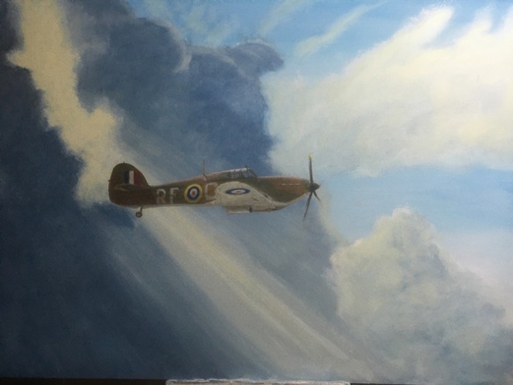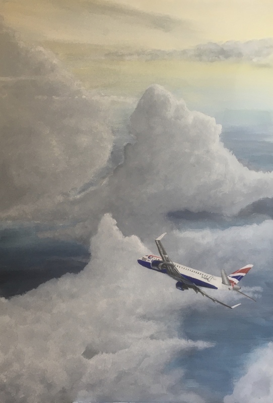 | Feedback from members: Joy Crouch: [Title] Amen to that. This is a great painting. Love the angle of the plane. They could use this for advertising. George Foxwell: The contrasted sharp detail and colour intensity of the plane with the softness of the clouds works really well. I wish I’d done this one. I absolutely love it ! |